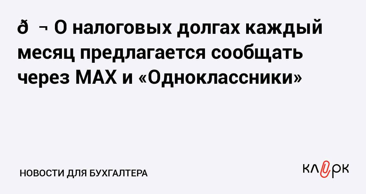 💬 О налоговых долгах каждый месяц предлагается сообщать через МАХ и «Одноклассники»