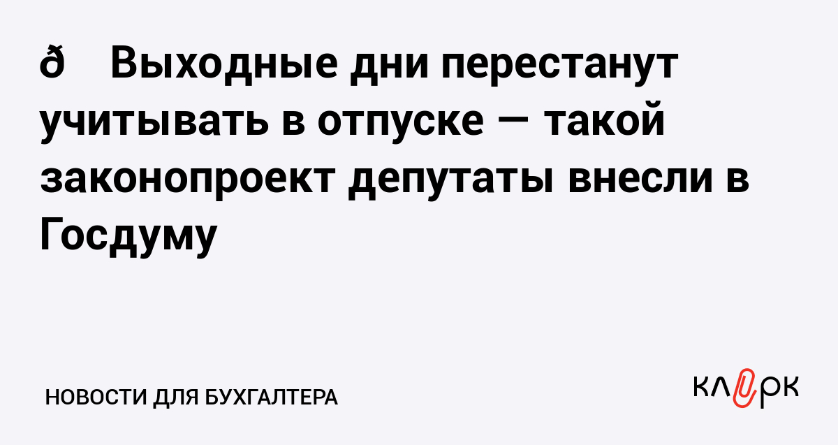 29 января 2026 года депутаты внесли в Госдуму законопроект, который позволит не включать выходные дни в число календарных дней ежегодного основного или ежегодного дополнительного оплачиваемого отпуска.