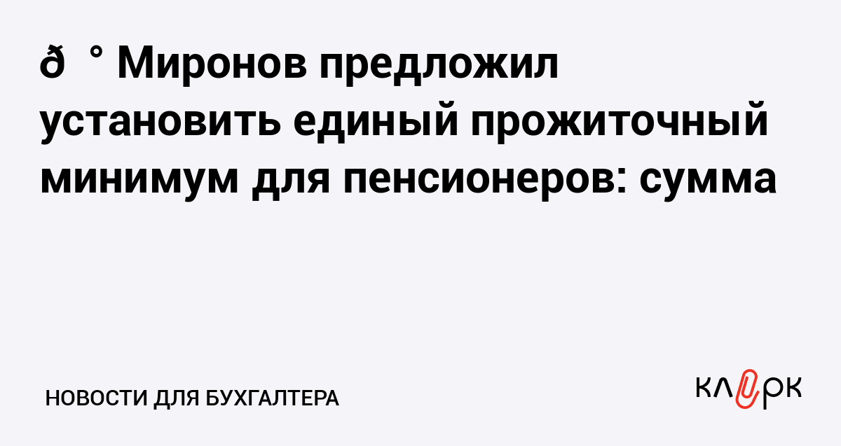 💰 Миронов предложил установить единый прожиточный минимум для пенсионеров: сумма