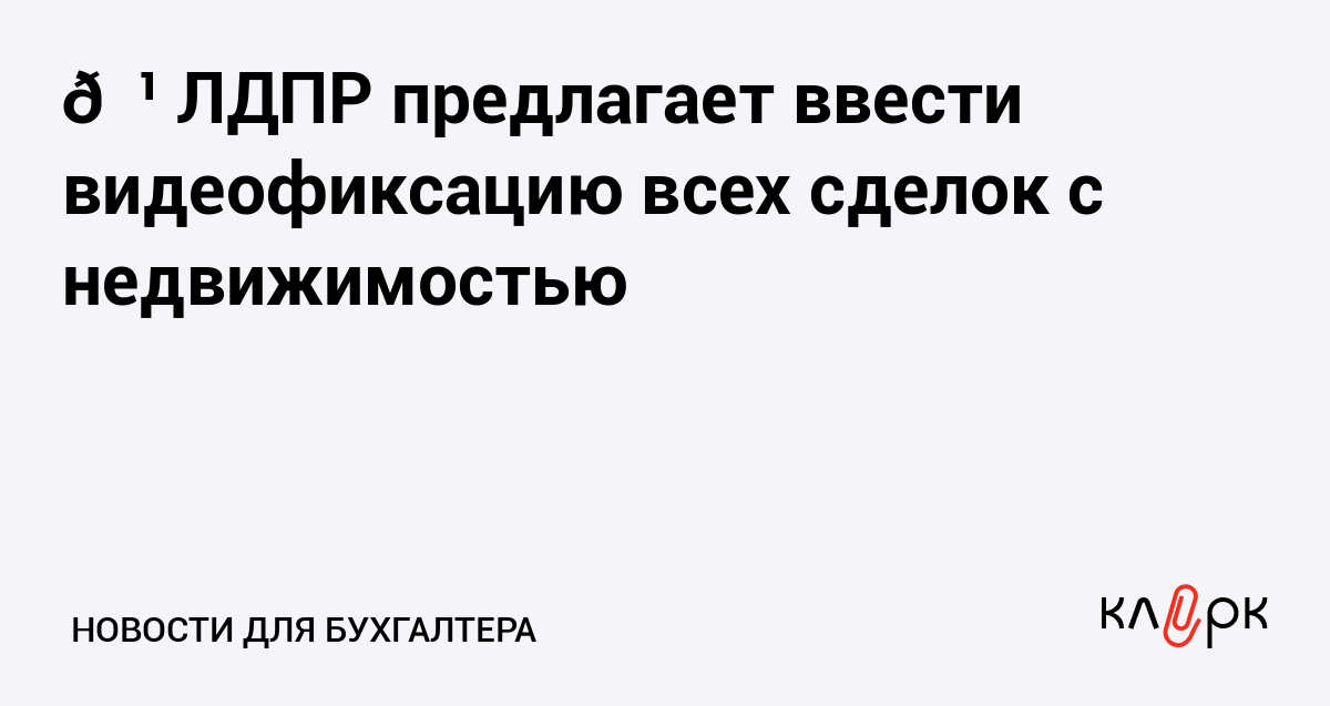 📹 ЛДПР предлагает ввести видеофиксацию всех сделок с недвижимостью
