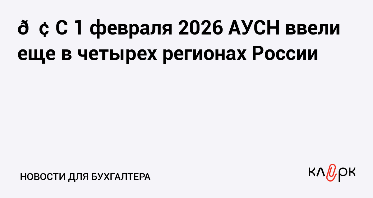 💢 С 1 февраля 2026 АУСН ввели еще в четырех регионах России