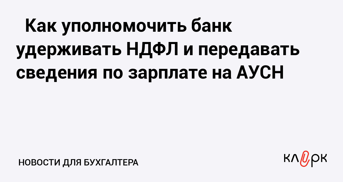 ❔ Как уполномочить банк удерживать НДФЛ и передавать сведения по зарплате на АУСН