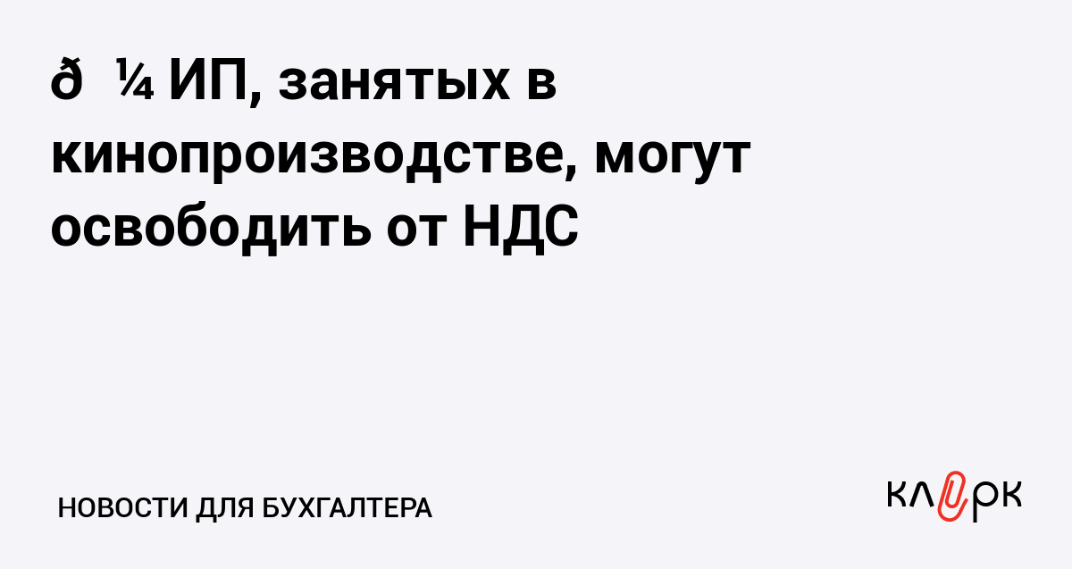 📼 ИП, занятых в кинопроизводстве, могут освободить от НДС