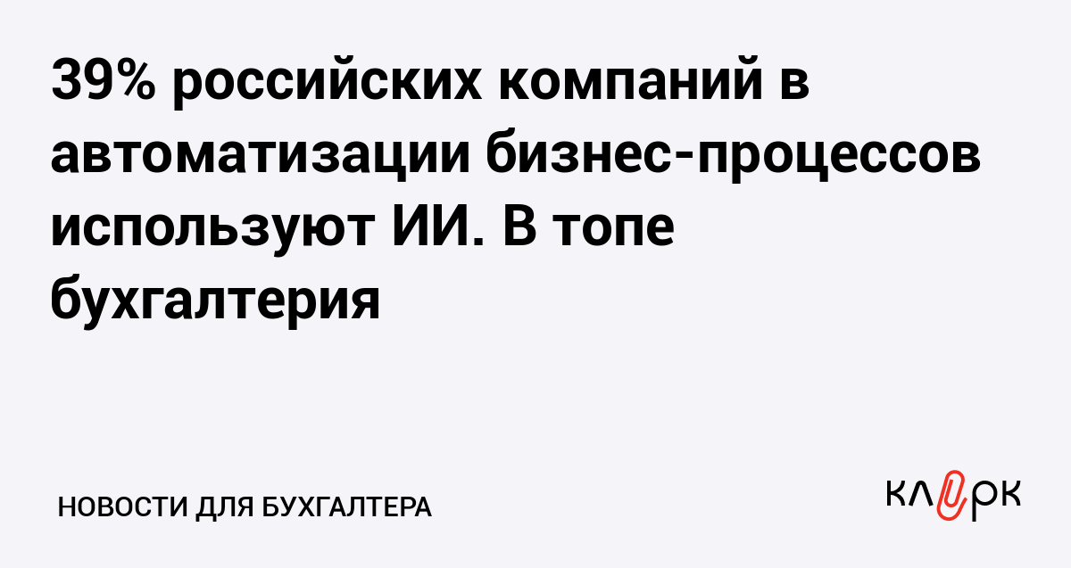 39% российских компаний в автоматизации бизнес-процессов используют ИИ. В топе бухгалтерия