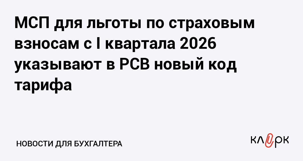 МСП для льготы по страховым взносам с I квартала 2026 указывают в РСВ новый код тарифа