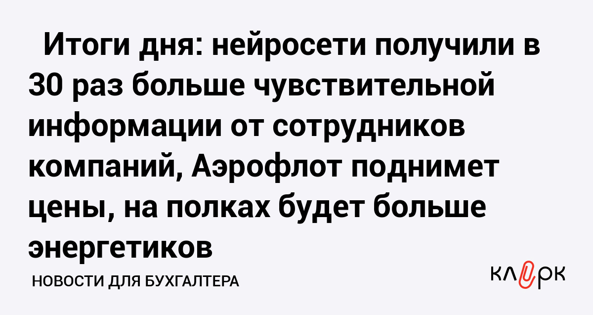 ⚡️ Итоги дня: нейросети получили в 30 раз больше чувствительной информации от сотрудников компаний, Аэрофлот поднимет цены, на полках будет больше энергетиков
