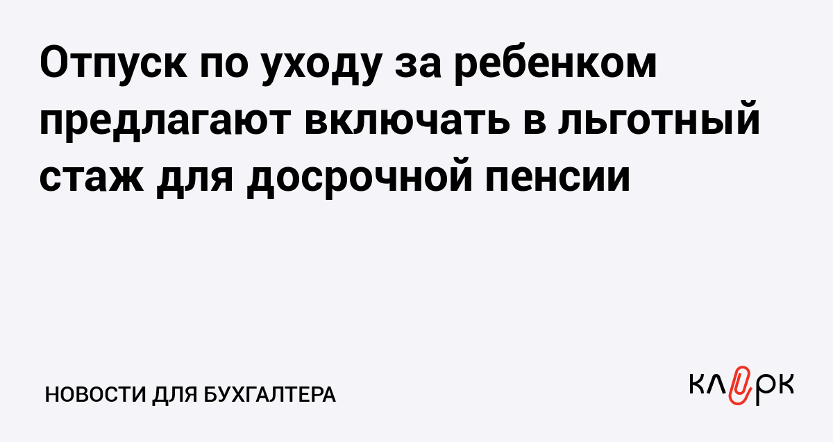 Отпуск по уходу за ребенком предлагают включать в льготный стаж для досрочной пенсии