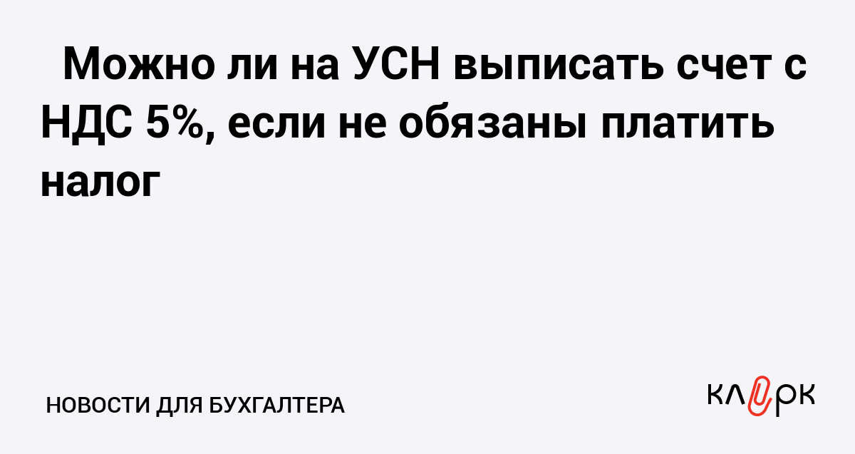 ❔ Можно ли на УСН выписать счет с НДС 5%, если не обязаны платить налог