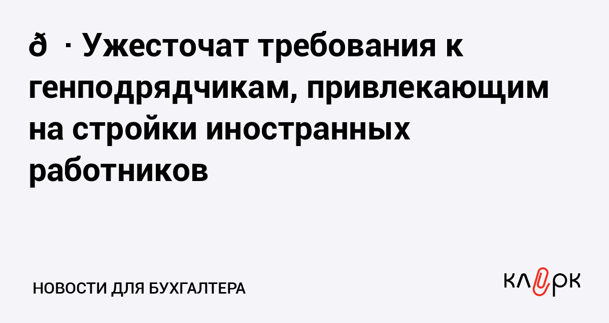 👷 Ужесточат требования к генподрядчикам, привлекающим на стройки иностранных работников