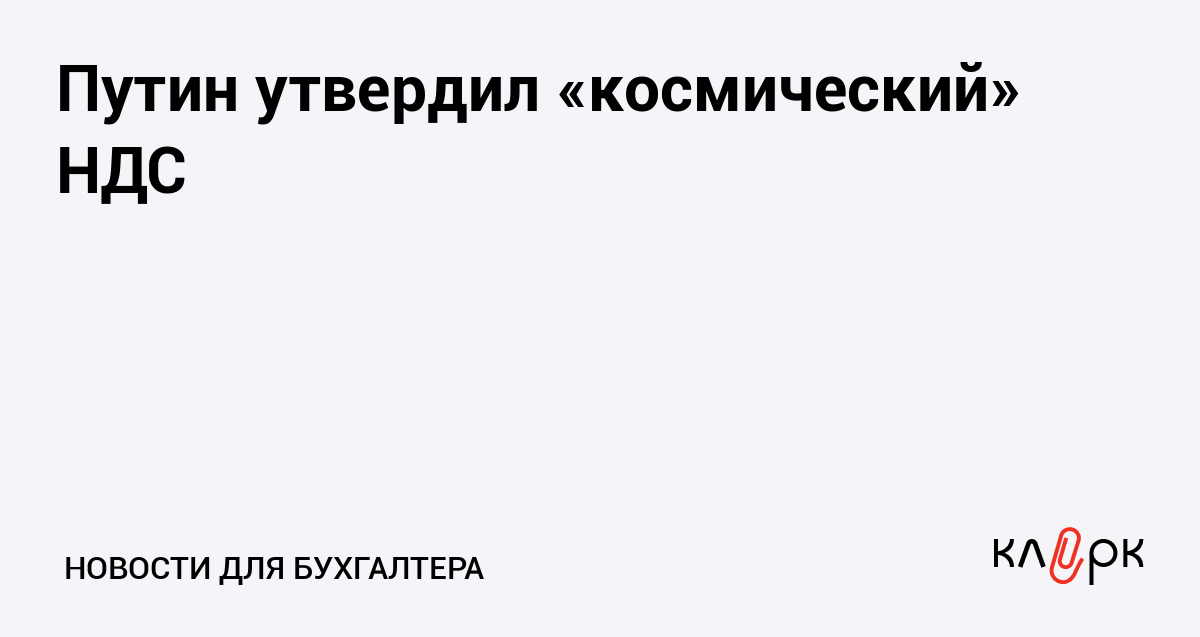 Президент РФ Владимир Путин подписал изменения в НК РФ, уточняющие применение нулевой ставки НДС в области производства и обслуживания космической деятельности.