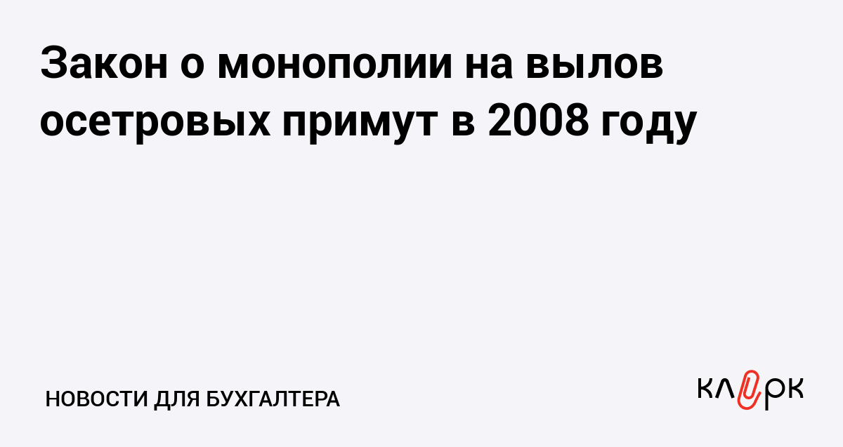 Закон о введении госмонополии на вылов осетровых в России сроком на 15 лет может быть принят в 2008 году.