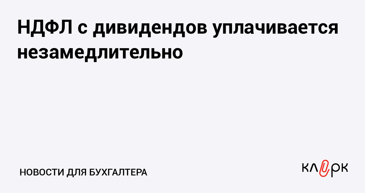 Отправив дивиденды почтовым переводом, налоговый агент обязан уплатить НДФЛ на следующий день, а не ждать, дойдут ли деньги по почте.