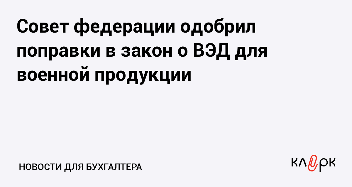 Совет федерации одобрил поправки в закон о ВЭД для военной продукции