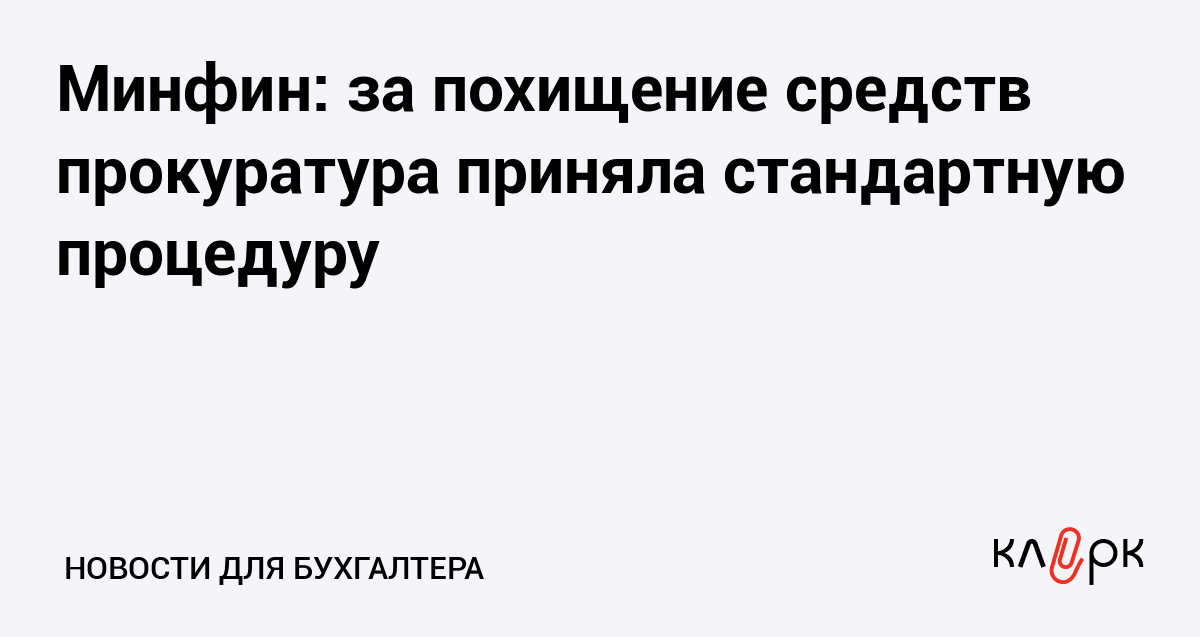 Минфин: за похищение средств прокуратура приняла стандартную процедуру