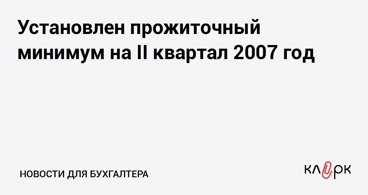 Установлен прожиточный минимум на II квартал 2007 год