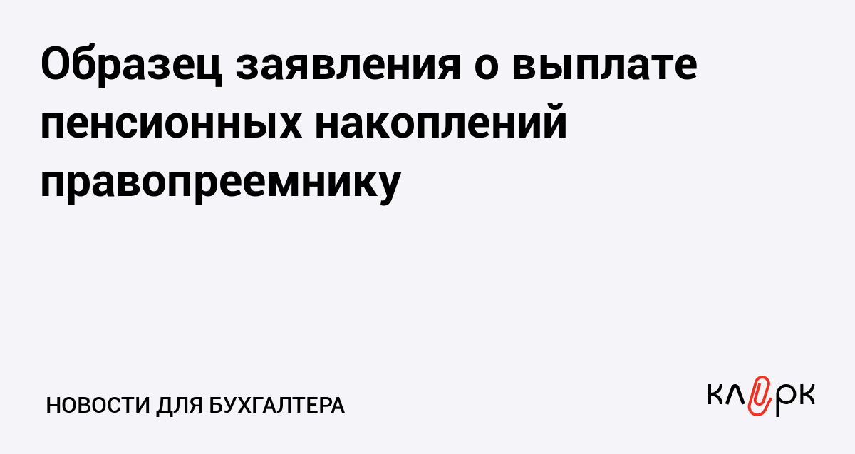 Образец заявления о выплате пенсионных накоплений правопреемнику
