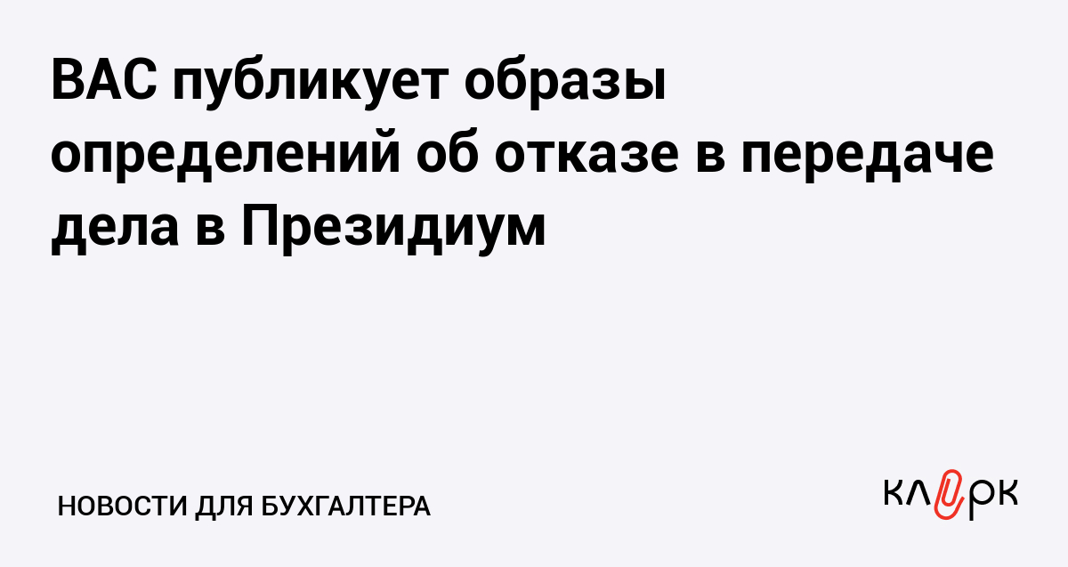 ВАС публикует образы определений об отказе в передаче дела в Президиум
