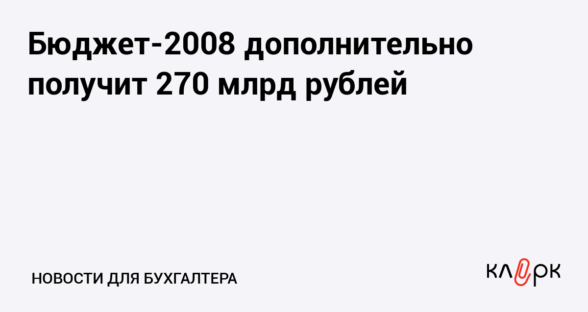 Бюджет-2008 дополнительно получит 270 млрд рублей