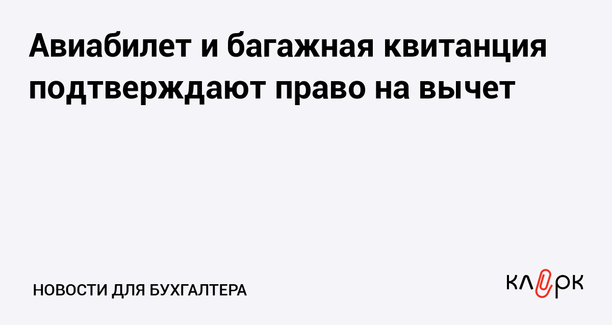 Авиабилет и багажная квитанция подтверждают право на вычет