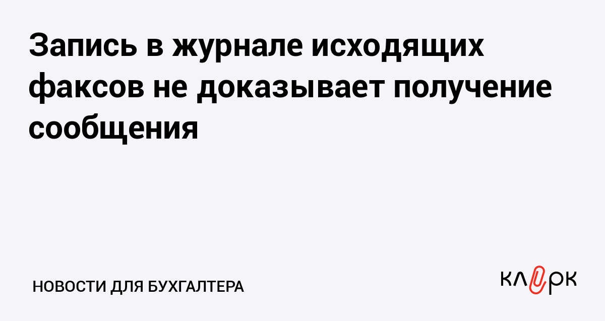 Запись в журнале исходящих факсов не доказывает получение сообщения