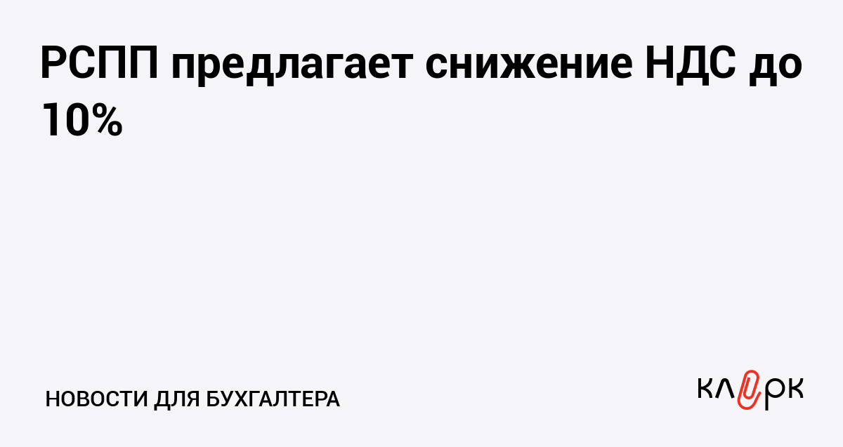Российский союз промышленников и предпринимателей предлагает снижение НДС до 10% и совершенствование его администрирования.