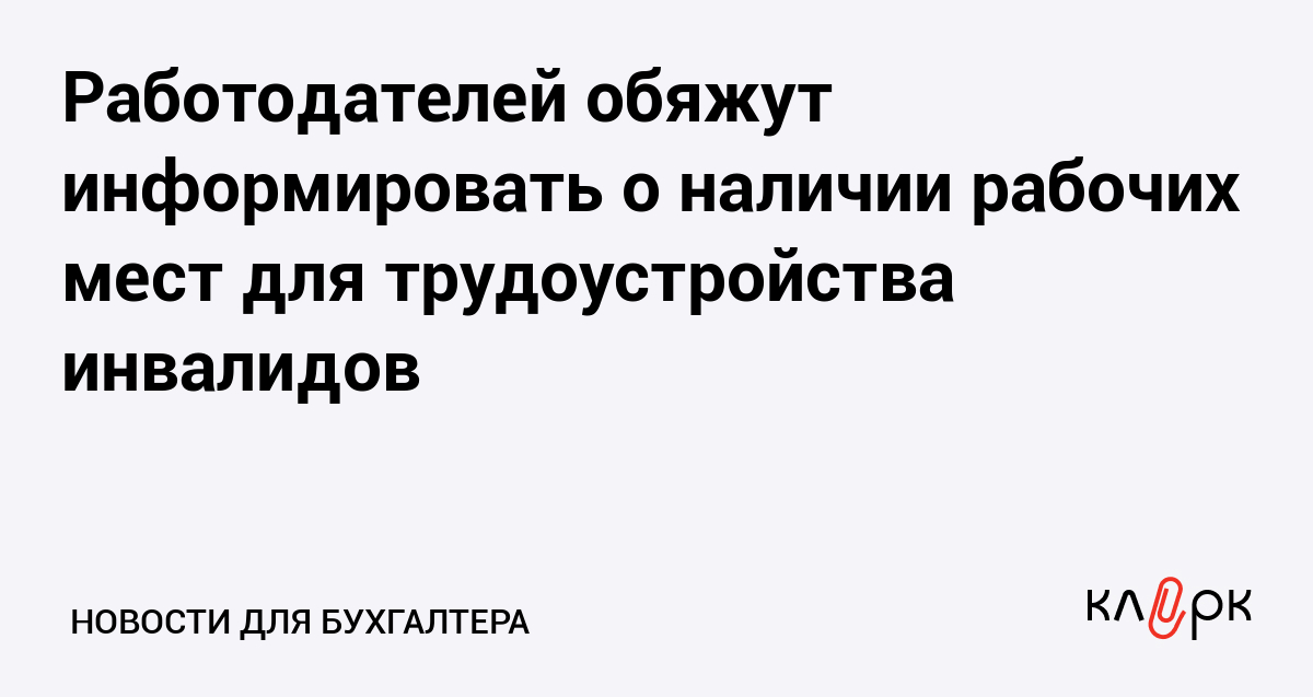 Работодателей обяжут информировать о наличии рабочих мест для трудоустройства инвалидов