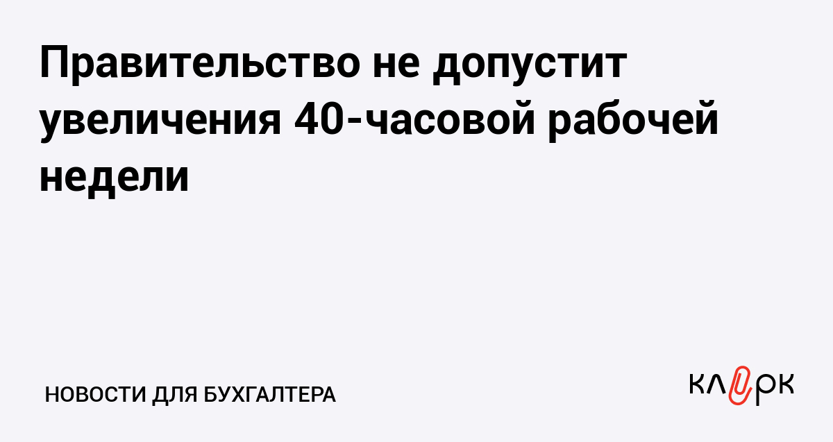 Правительство не допустит увеличения 40-часовой рабочей недели