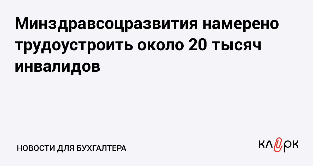 Минздравсоцразвития намерено трудоустроить около 20 тысяч инвалидов