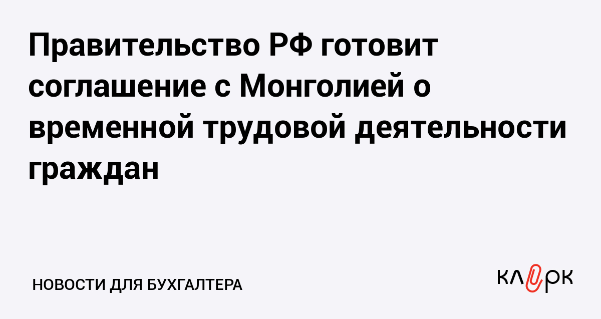 В ходе сегодняшнего заседания президиума правительства РФ было рассмотрено Соглашение между правительствами РФ и Монголии о временной трудовой деятельности граждан одного государства на территории другого государства.