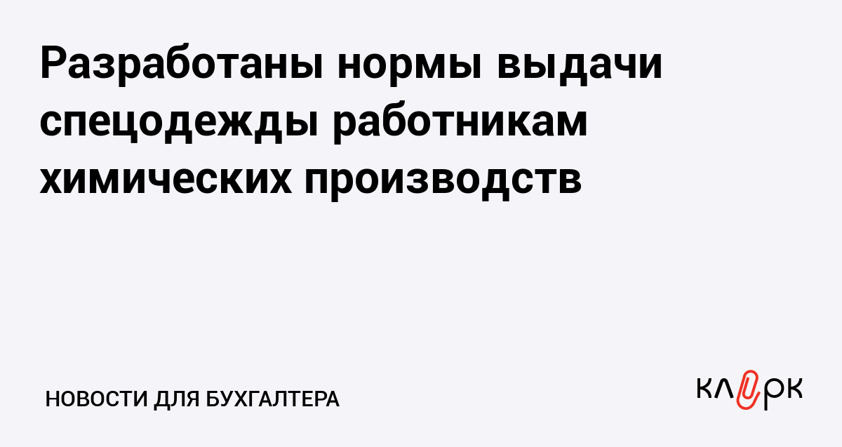 Разработаны нормы выдачи спецодежды работникам химических производств