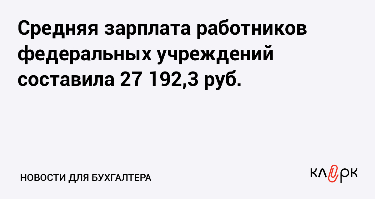 Средняя зарплата работников федеральных учреждений составила 27 192,3 руб.