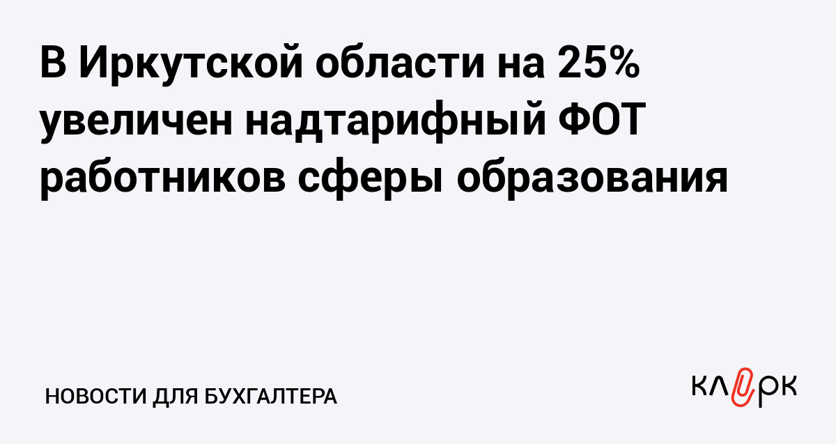 В Иркутской области на 25% увеличен надтарифный ФОТ работников сферы образования