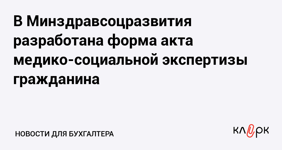 Минздравсоцразвития разработало проект ведомственного приказа «Об утверждении формы и порядка составления акта медико-социальной экспертизы гражданина».