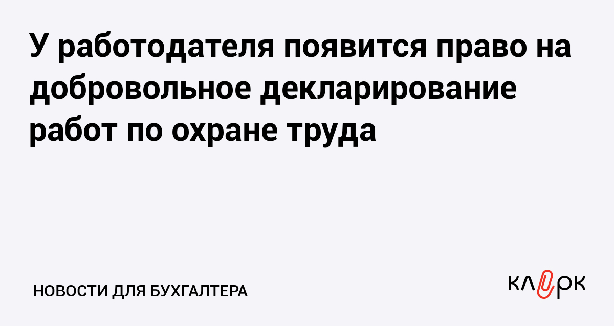 У работодателя появится право на добровольное декларирование работ по охране труда