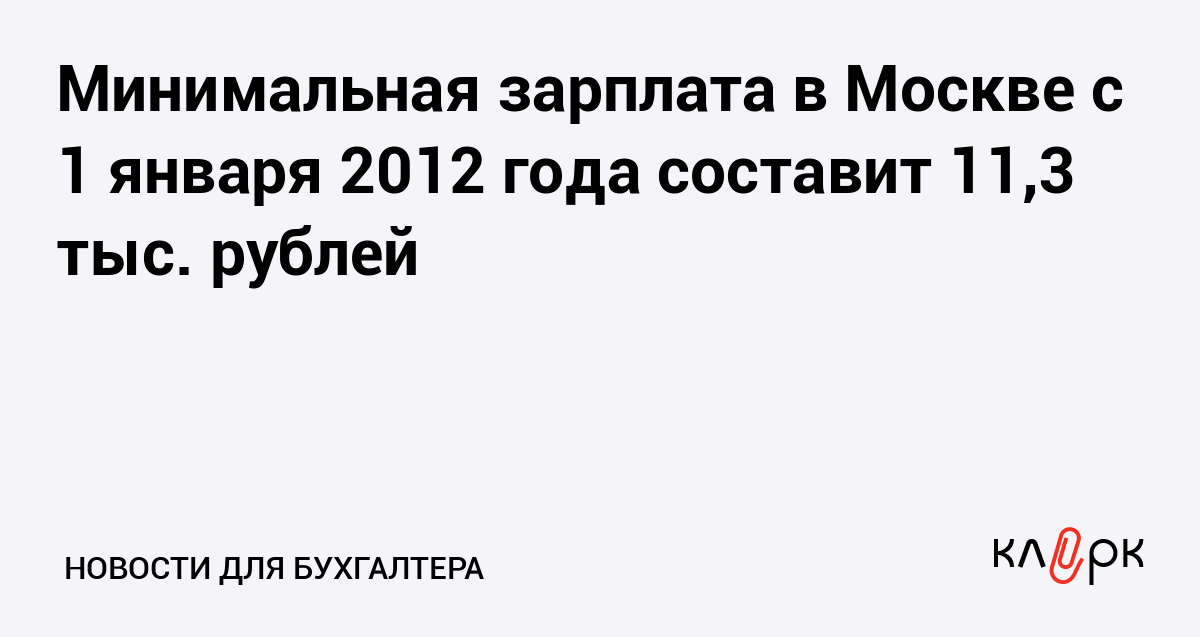 Минимальная зарплата в Москве с 1 января 2012 года составит 11,3 тыс. рублей