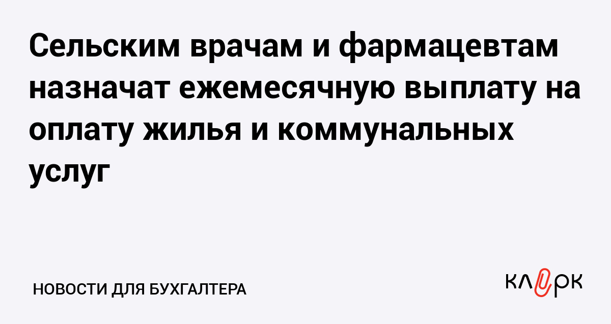 Сельским врачам и фармацевтам назначат ежемесячную выплату на оплату жилья и коммунальных услуг