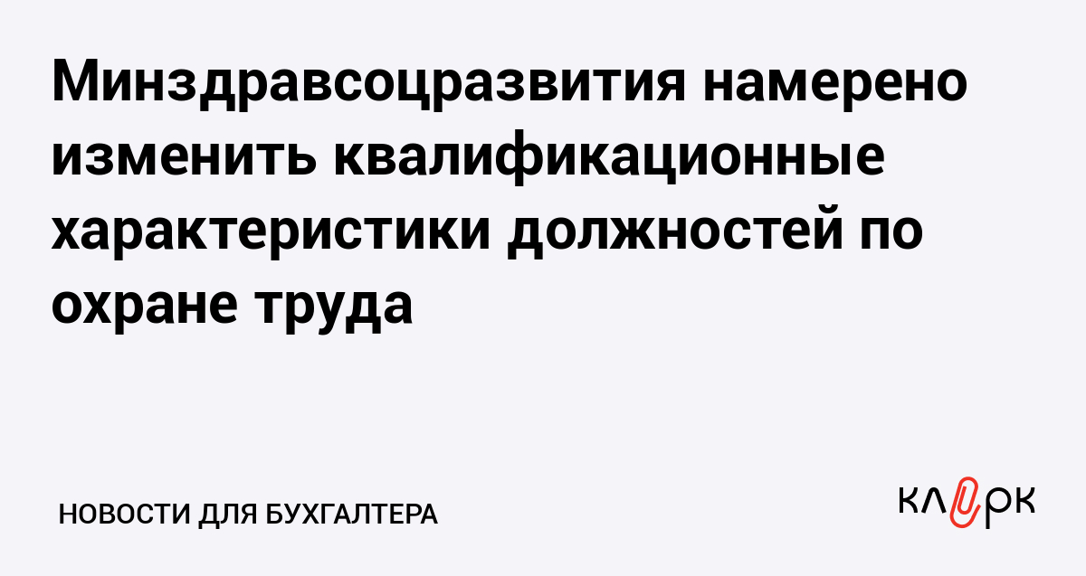 Минздравсоцразвития РФ подготовило проект ведомственного приказа, вносящего изменения в раздел I «Общеотраслевые квалификационные характеристики должностей работников, занятых на предприятиях, в учреждениях и организациях» Квалификационного справочника должностей руководителей, специалистов и других служащих.