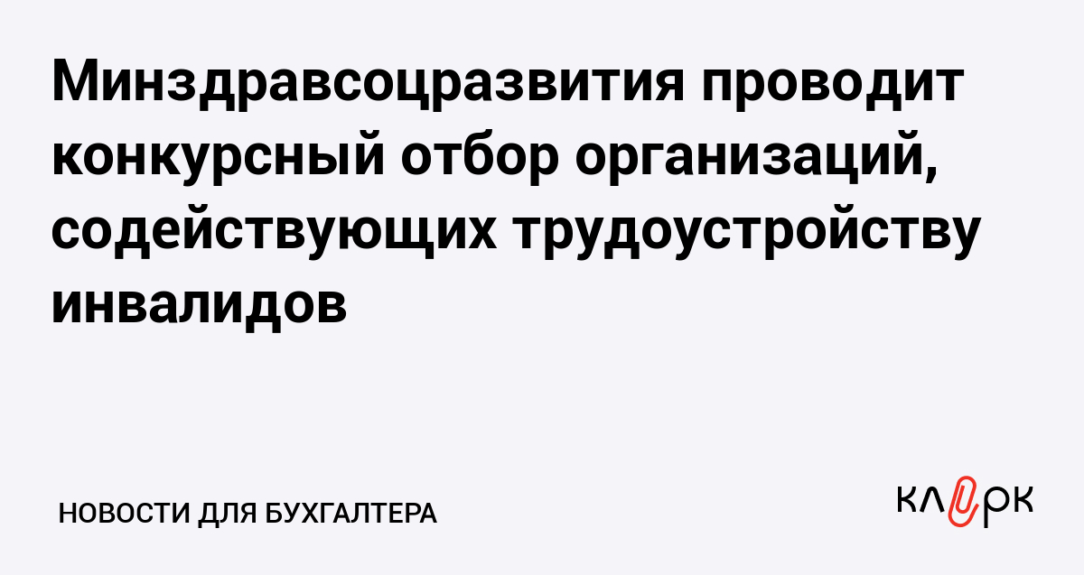 Минздравсоцразвития проводит конкурсный отбор организаций, содействующих трудоустройству инвалидов