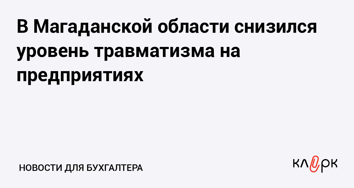 - В Курганской области на 22% снизился уровень производственного травматизма – Клерк.Ру, 30.05.12