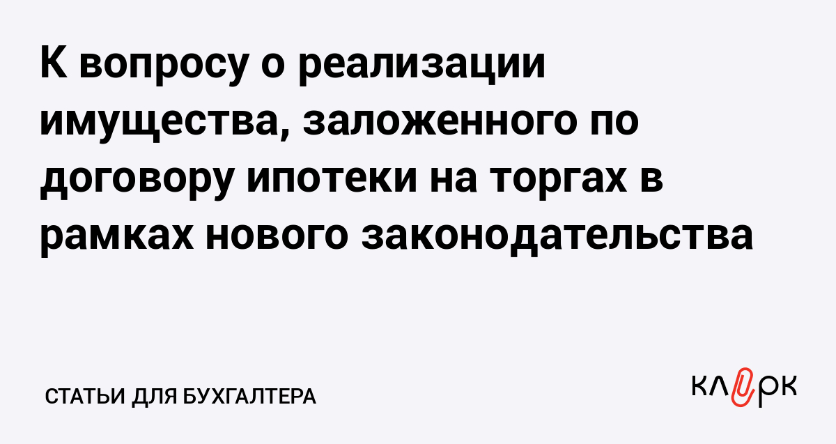 К вопросу о реализации имущества, заложенного по договору ипотеки на торгах в рамках нового законодательства