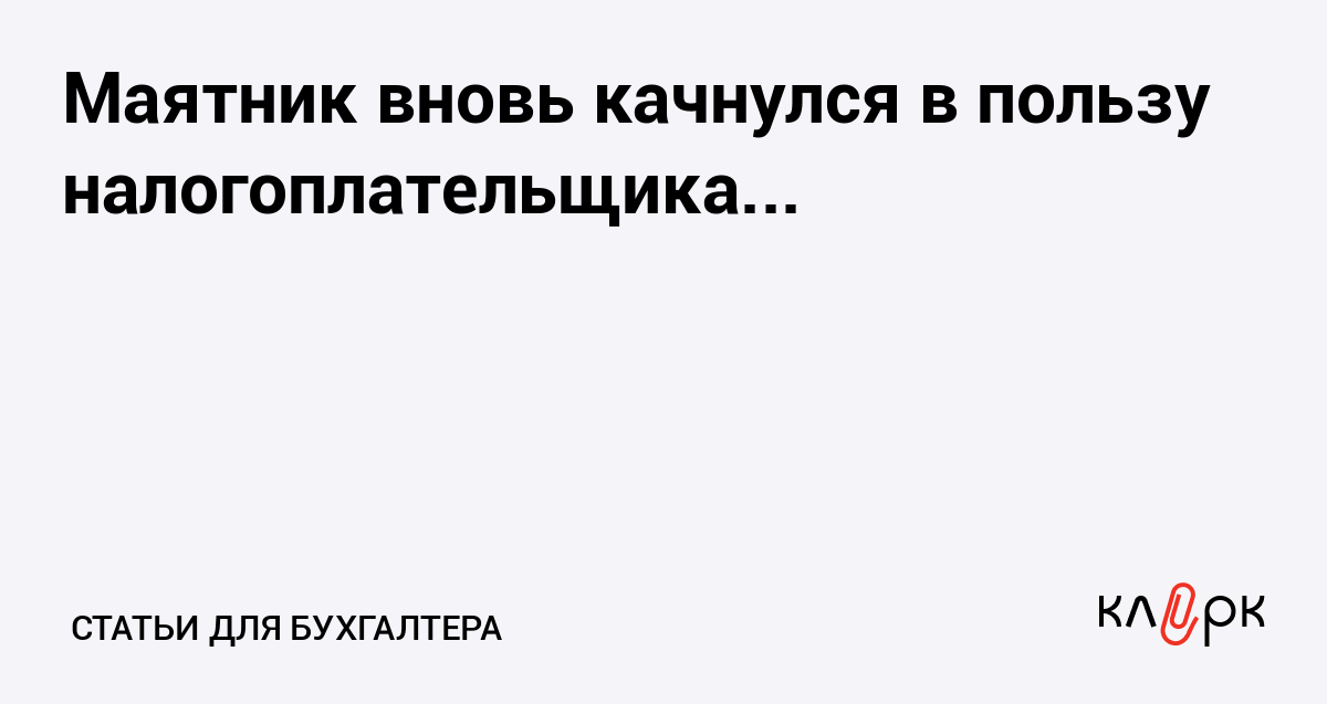 Маятник вновь качнулся в пользу налогоплательщика...