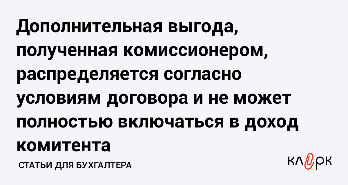 Дополнительная выгода, полученная комиссионером, распределяется согласно условиям договора и не может полностью включаться в доход комитента