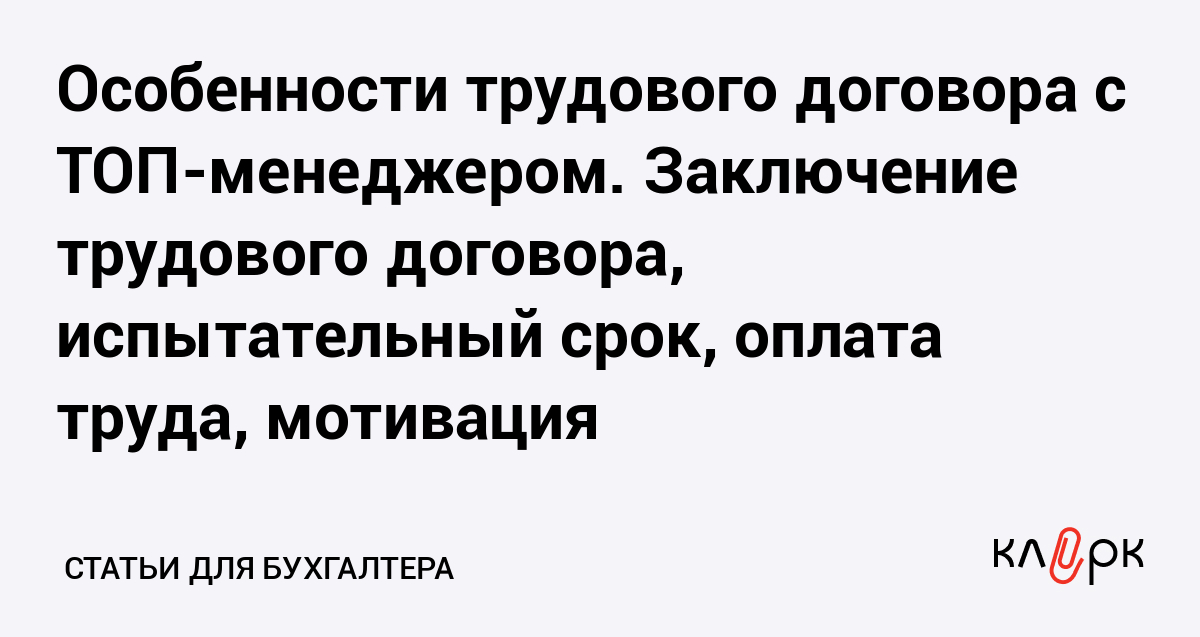 Особенности трудового договора с ТОП-менеджером. Заключение трудового договора, испытательный срок, оплата труда, мотивация