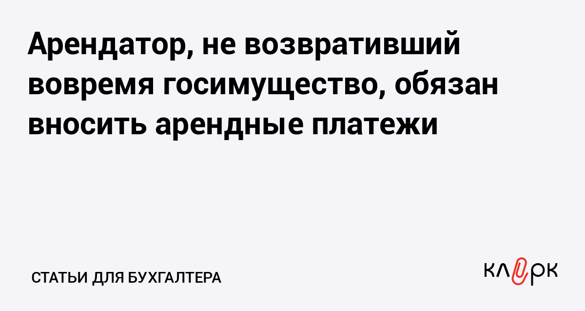Арендатор, не возвративший вовремя госимущество, обязан вносить арендные платежи