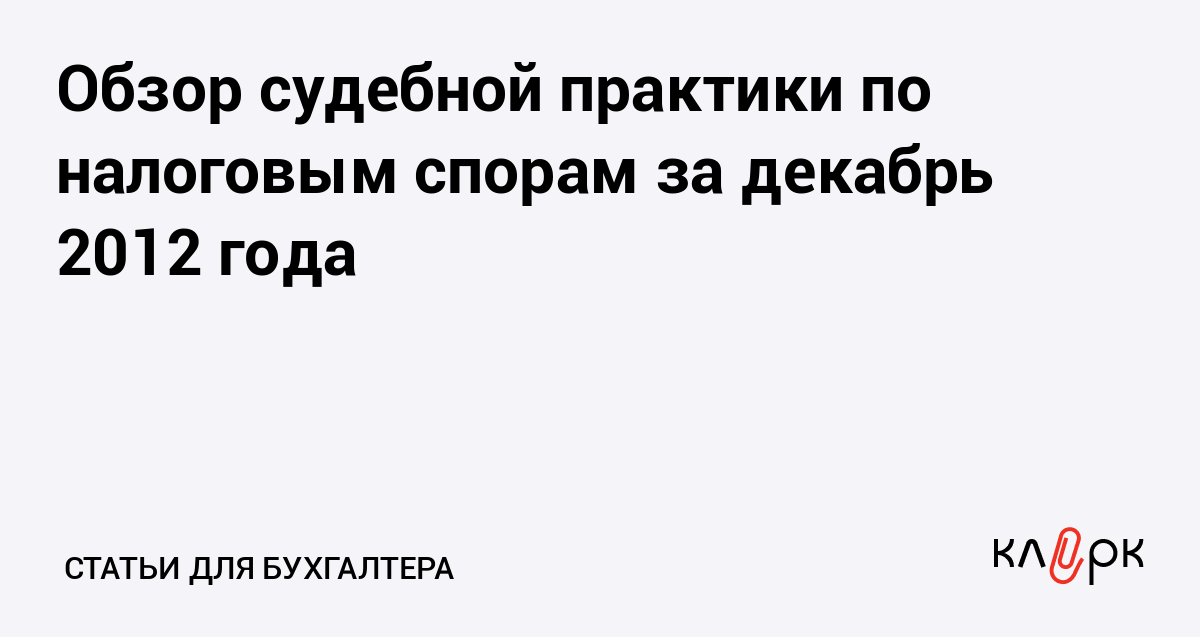 Обзор судебной практики по налоговым спорам за декабрь 2012 года