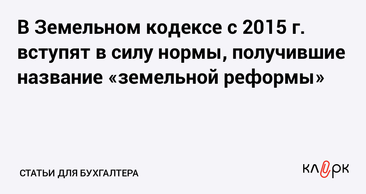 В Земельном кодексе с 2015 г. вступят в силу нормы, получившие название «земельной реформы»