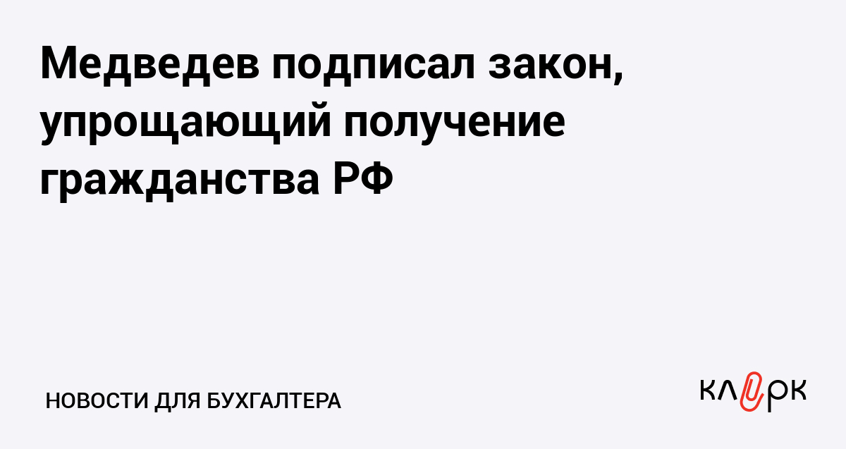 Медведев подписал закон, упрощающий получение гражданства РФ