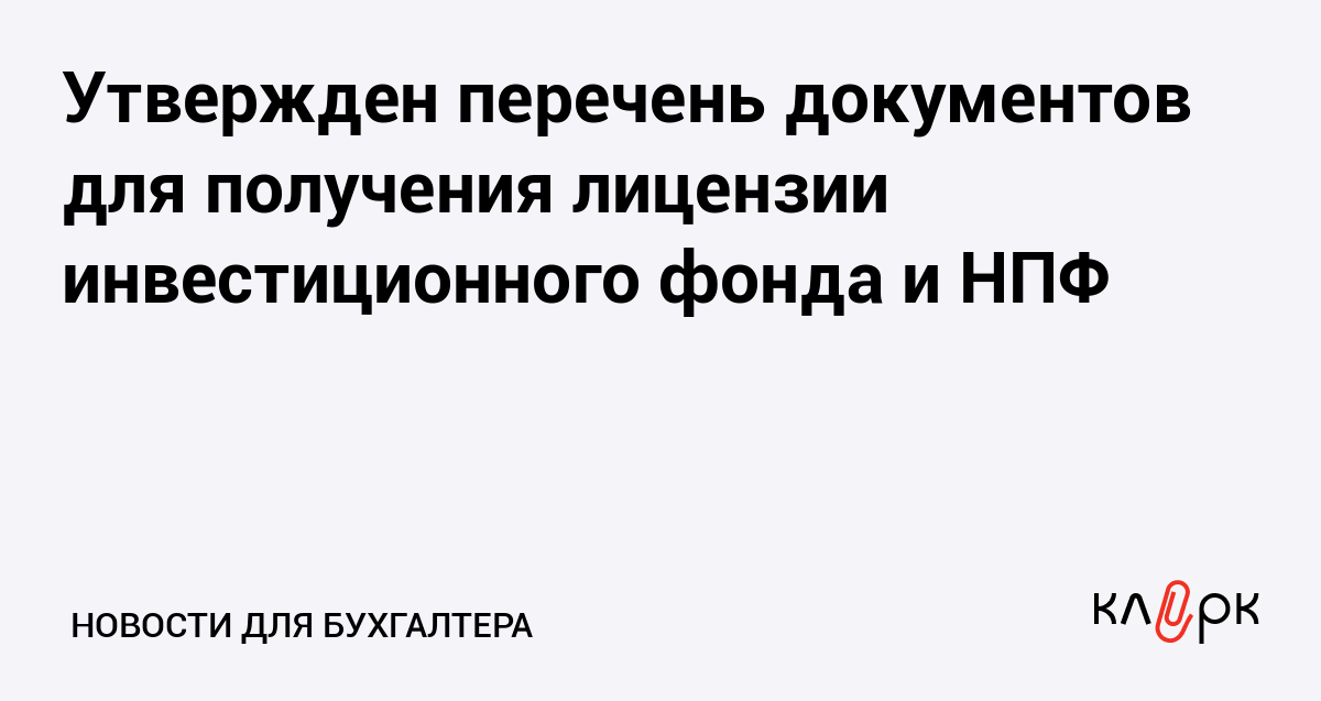 Утвержден перечень документов для получения лицензии инвестиционного фонда и НПФ