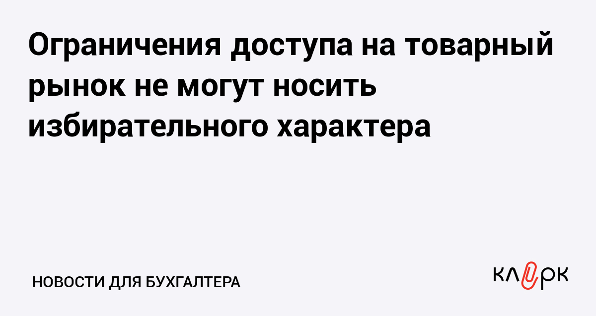 Ограничения доступа на товарный рынок не могут носить избирательного характера