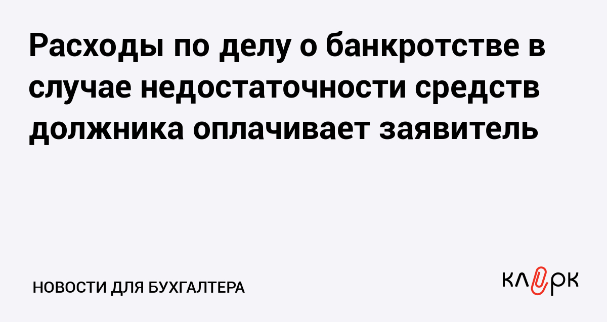 Расходы по делу о банкротстве в случае недостаточности средств должника оплачивает заявитель